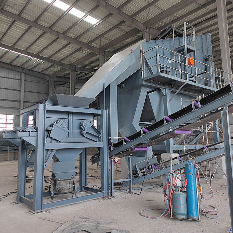 單輥式一級破碎機的破碎輥與液壓驅動的推壓裝置配合工作,破碎效率高。低轉速配合可動的緩沖板可實現柔性分離。破碎輥上面的耐磨件采用銑刨機的標準破刀頭,耐磨性好,更換方便。